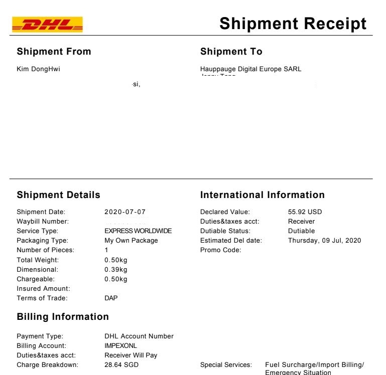 메일로 물어보니 매니저가 미리 등록한 DHL운송장을 보내주었습니다. prepaid 송장이라고는 했습니다. 이걸 부치라고 하더군요.