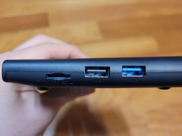 옆쪽면에는 마이크로 SD카드단자가 있는데, 마이크로 SD카드를 꽂아서 용량 확장이 가능하게 하였습니다.