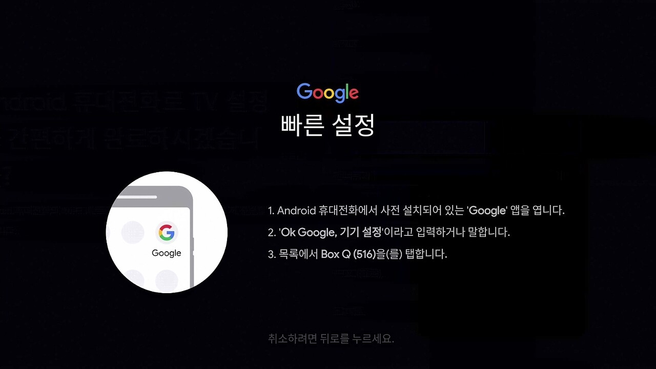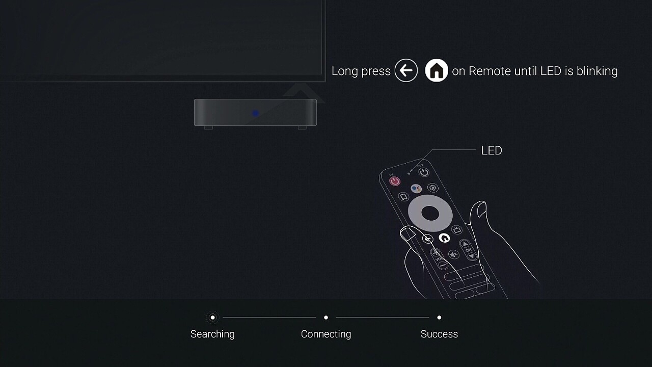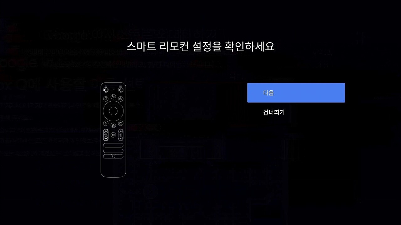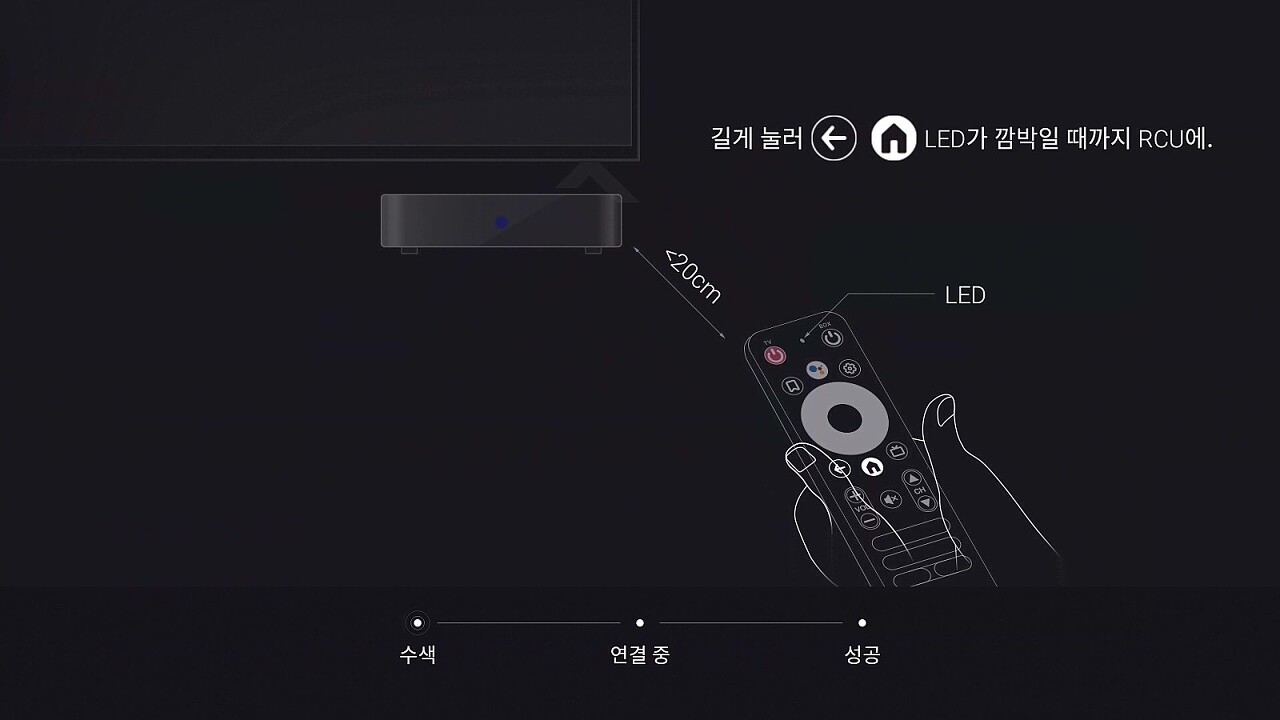 전원을 넣으니 부팅이 되었고, 리모컨을 연결 하라고 뜹니다. 리모컨 연결은 뒤로가기+홈키로 가능합니다.