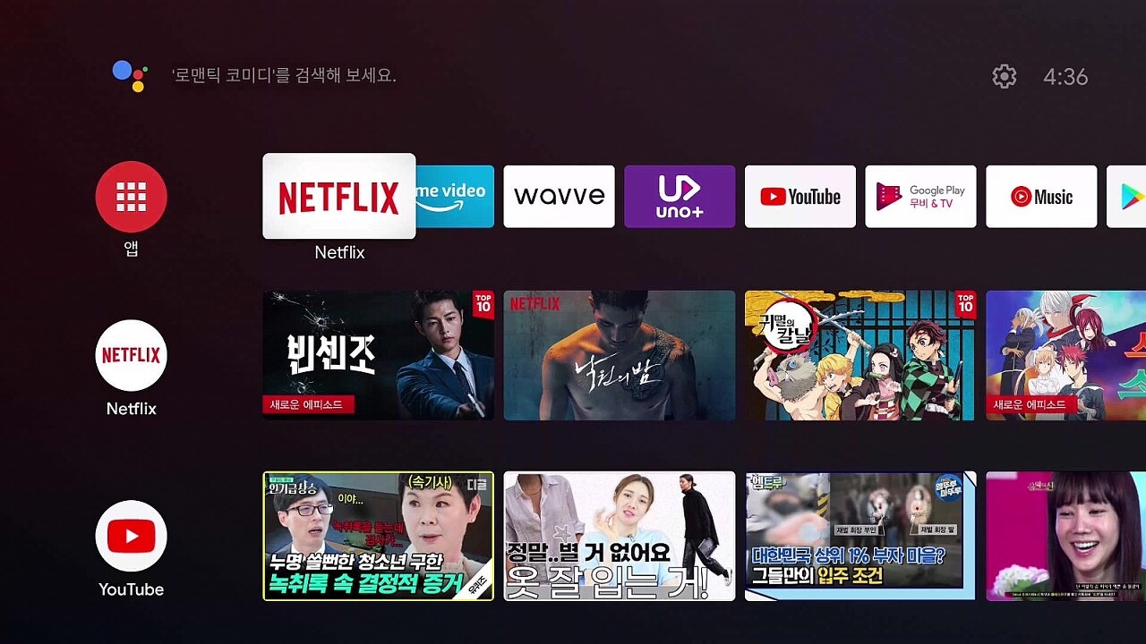 넷플릭스, 유튜브, 웨이브, 우노플러스, 티비 바로가기 키를 눌러서 빠르게 실행이 가능합니다.