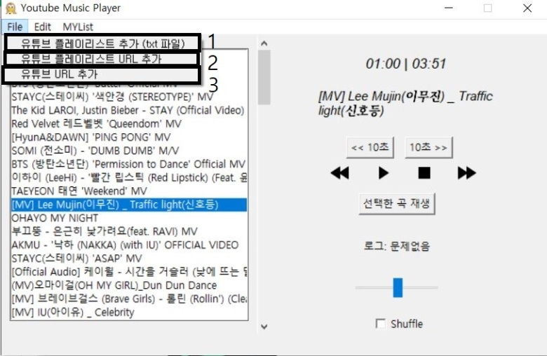 이런식으로 저장해놓고 이 txt 파일을 열으면 자동으로 노래 목록을 불러옵니다.
